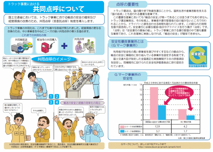 中小のトラック運送事業者においては、深夜・早朝時間帯における点呼のための運行管理者等の確保が大きな負担となっている状況ですが、今般、輸送の安全確保を前提としつつ、貨物自動車運送事業法第29条を活用して、平成25年11月1日より点呼の受委託制度を導入することとなりました。